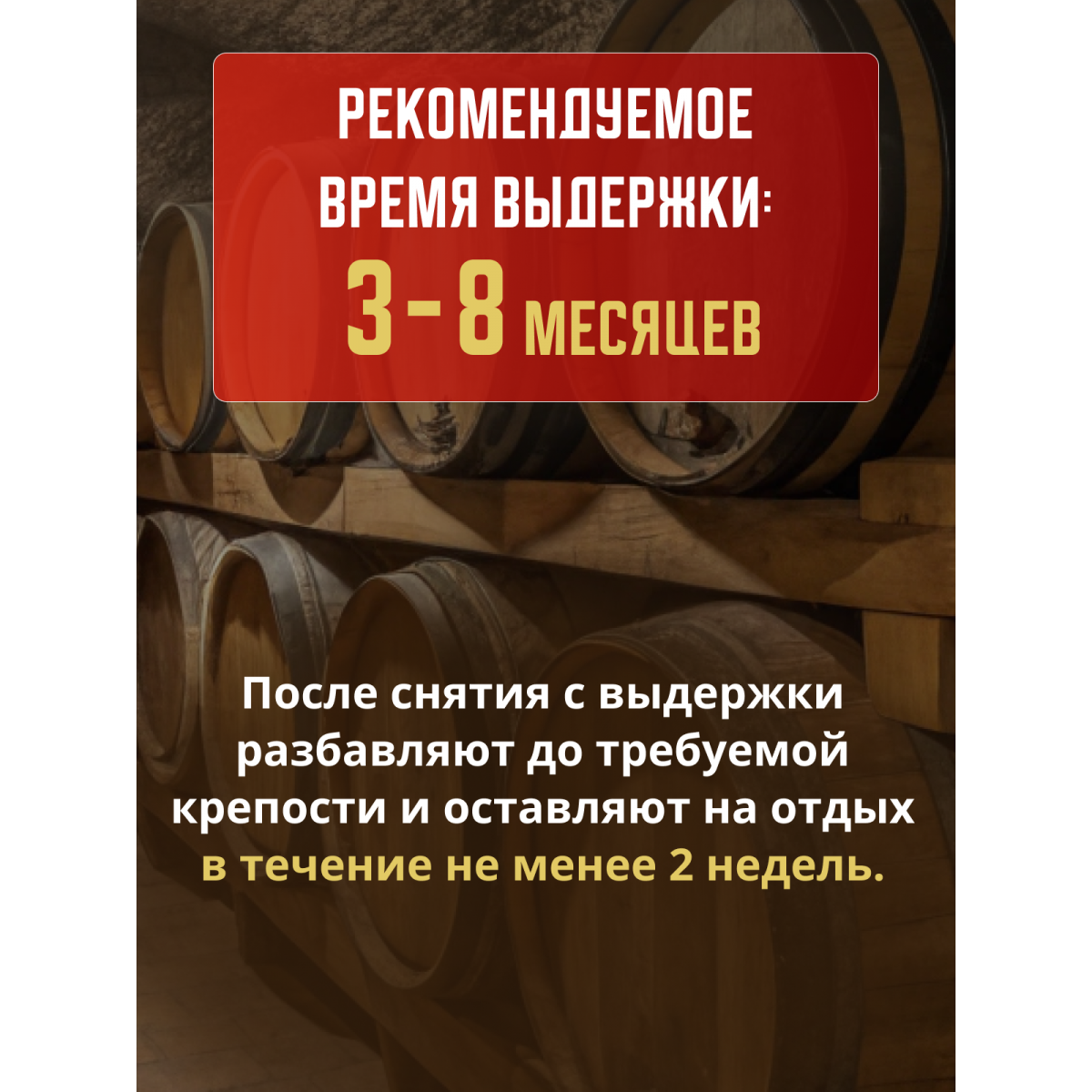 После снятия с выдержки дистиллят разбавляют до требуемой крепости, и оставляют на отдых в течение не менее 2 недель