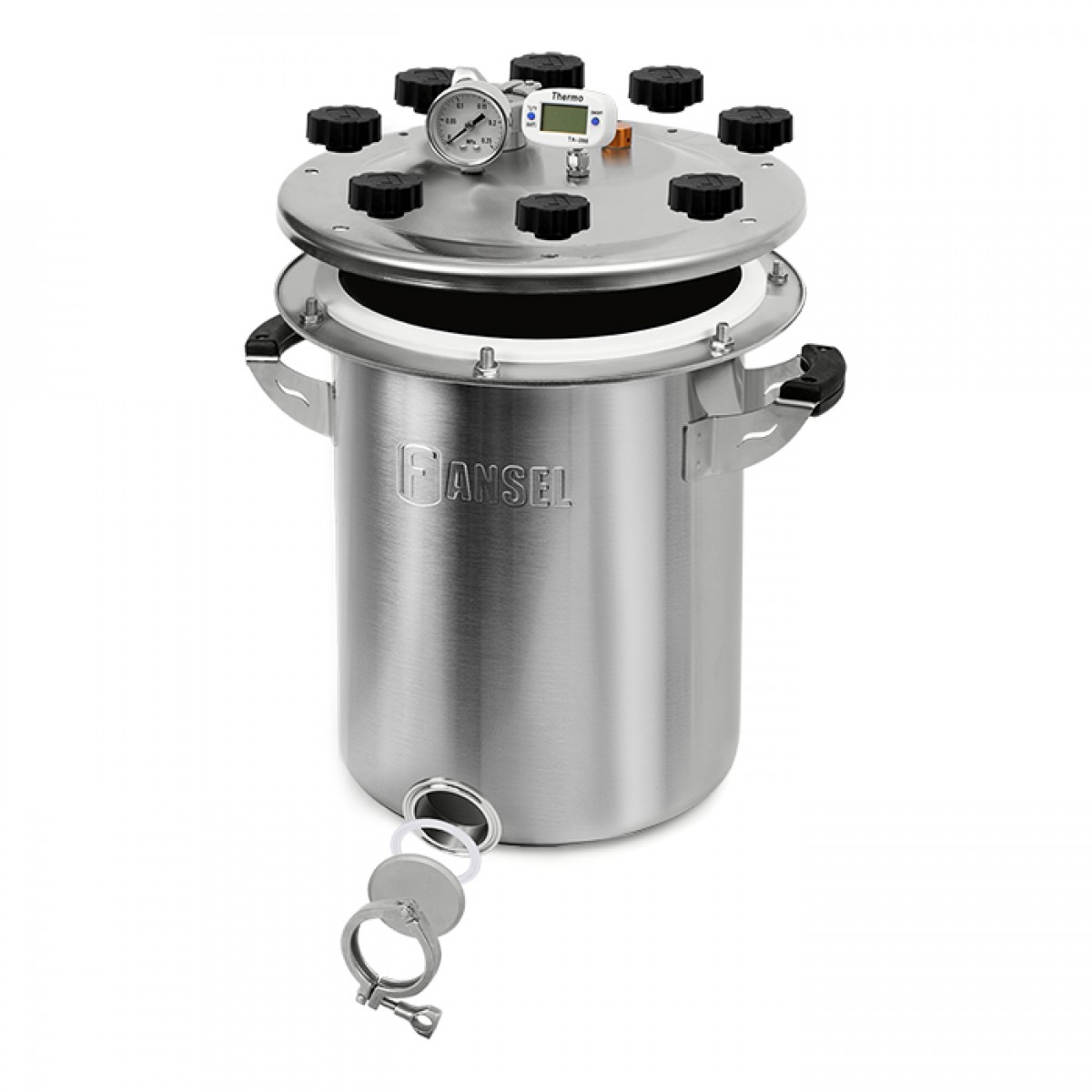 Благодаря клампу на 2 дюйма можно подключить блок управления - автоклав приготовит консервы без вашего участия.