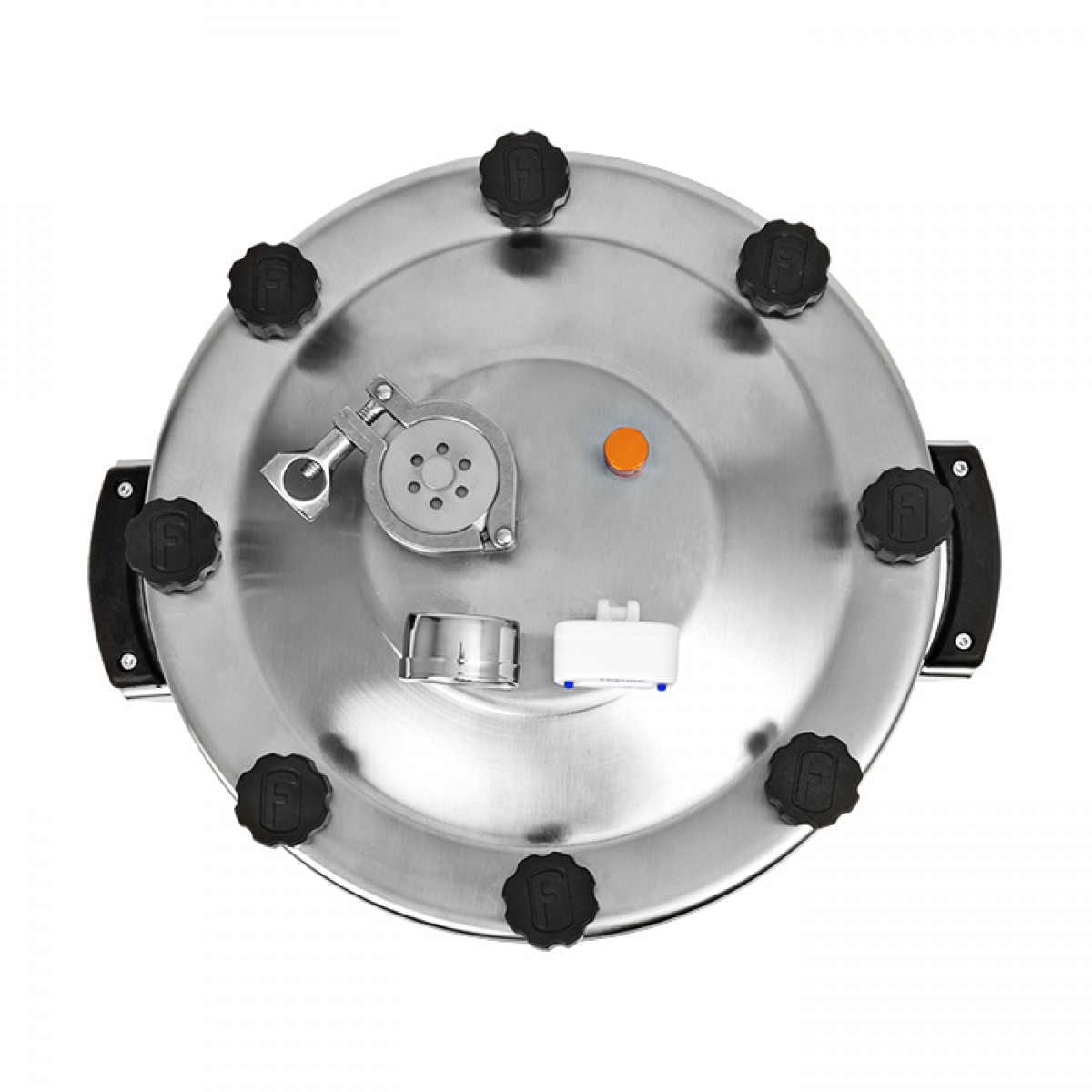 Крышка дополнена клампом 1,5 дюйма, на который устанавливается любая бражная колонна 1,5 дюйма.