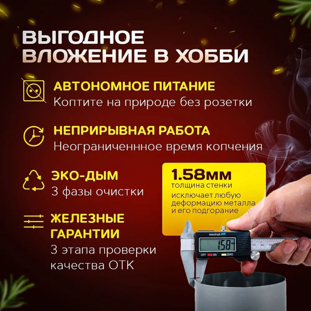 Одной из ключевых особенностей дымогенератора является простота в эксплуатации. Запуск устройства не потребует специальных навыков — достаточно всего лишь следовать простым инструкциям. Отличное дополнение для гриля и коптильни, дающее возможность добавить нотки копчения к мясу, рыбе или овощам, сделает ваше готовка настоящим искусством.
