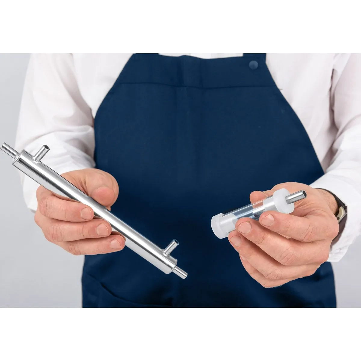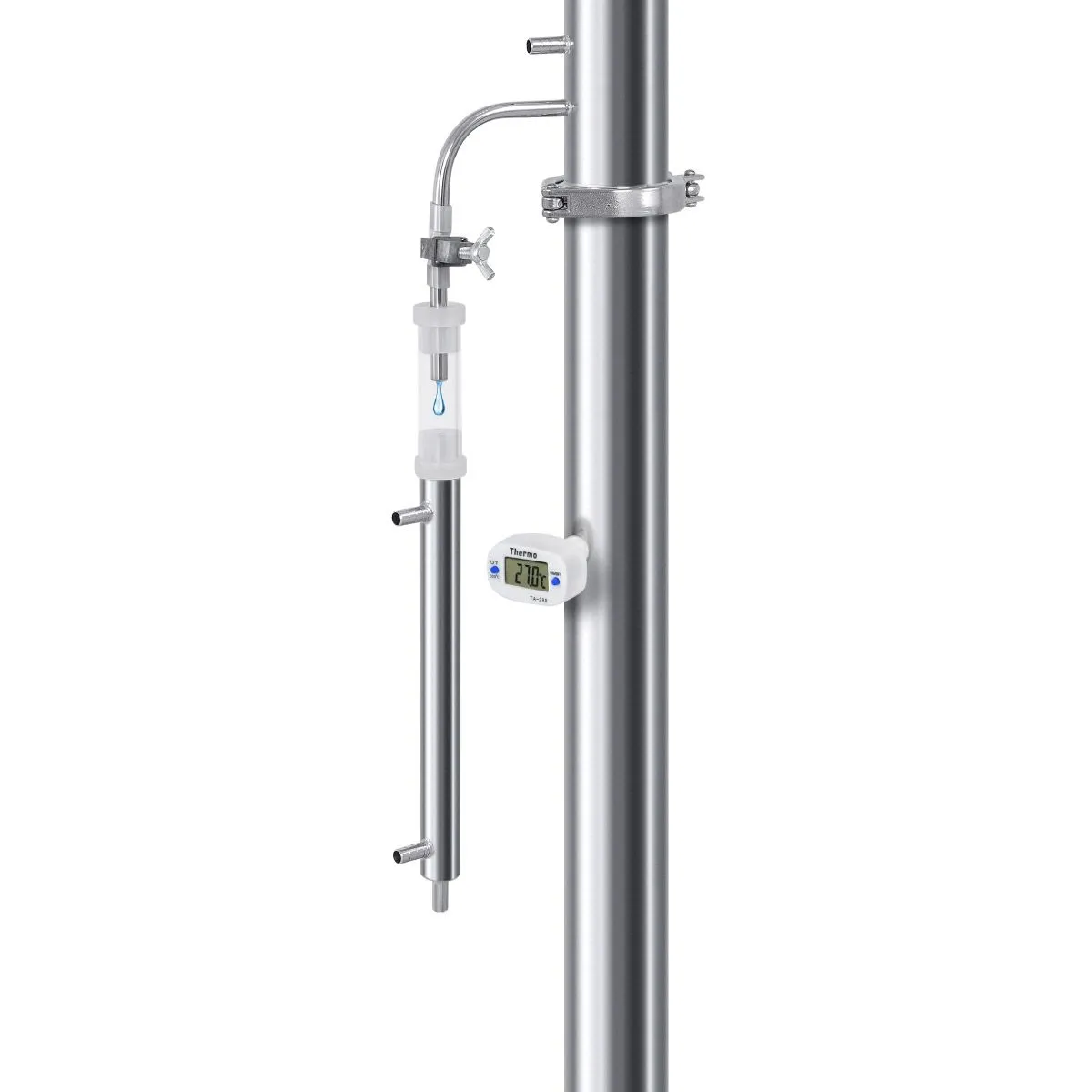 ✅Узел отбора по жидкостиВстроен в охладитель. Зажим Гофмана позволяет точно настроить скорость отбора, а входящий в комплект доохладитель эффективно снижает температуру продукта.
