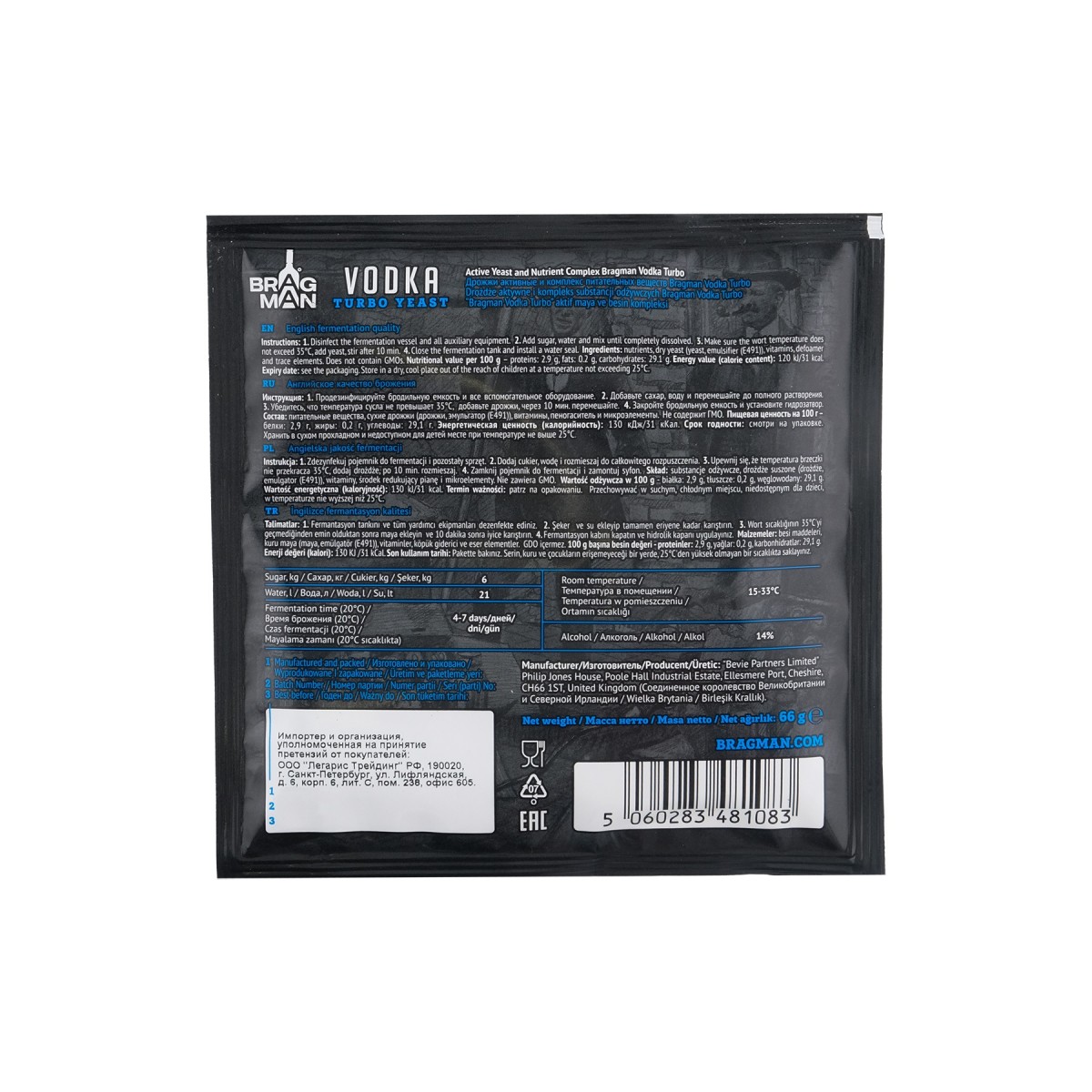 Дрожжи спиртовые Bragman Vodka, 66 гр