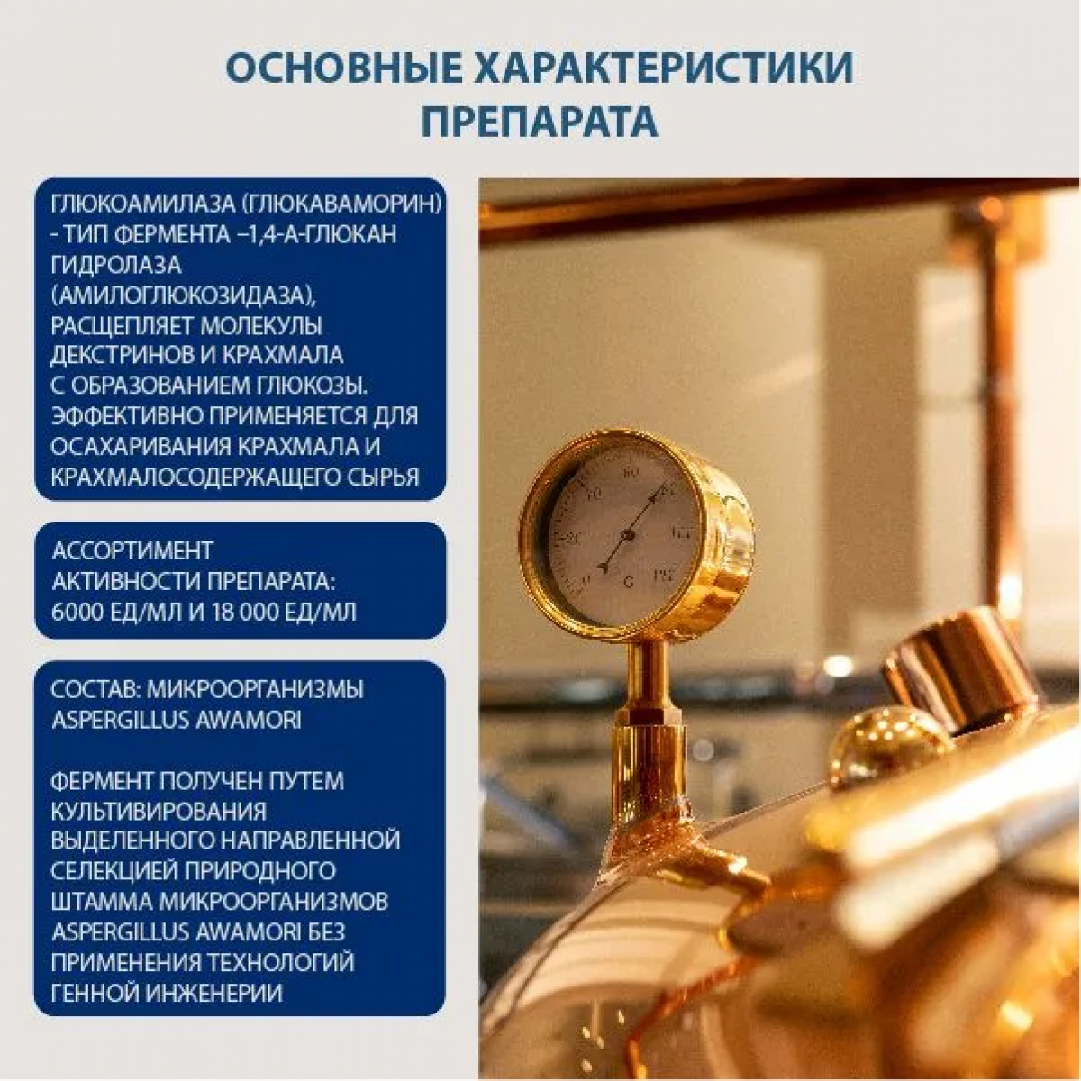 Ферментный препарат получают результате направленной глубинной ферментации штамма Aspergillus awamori.