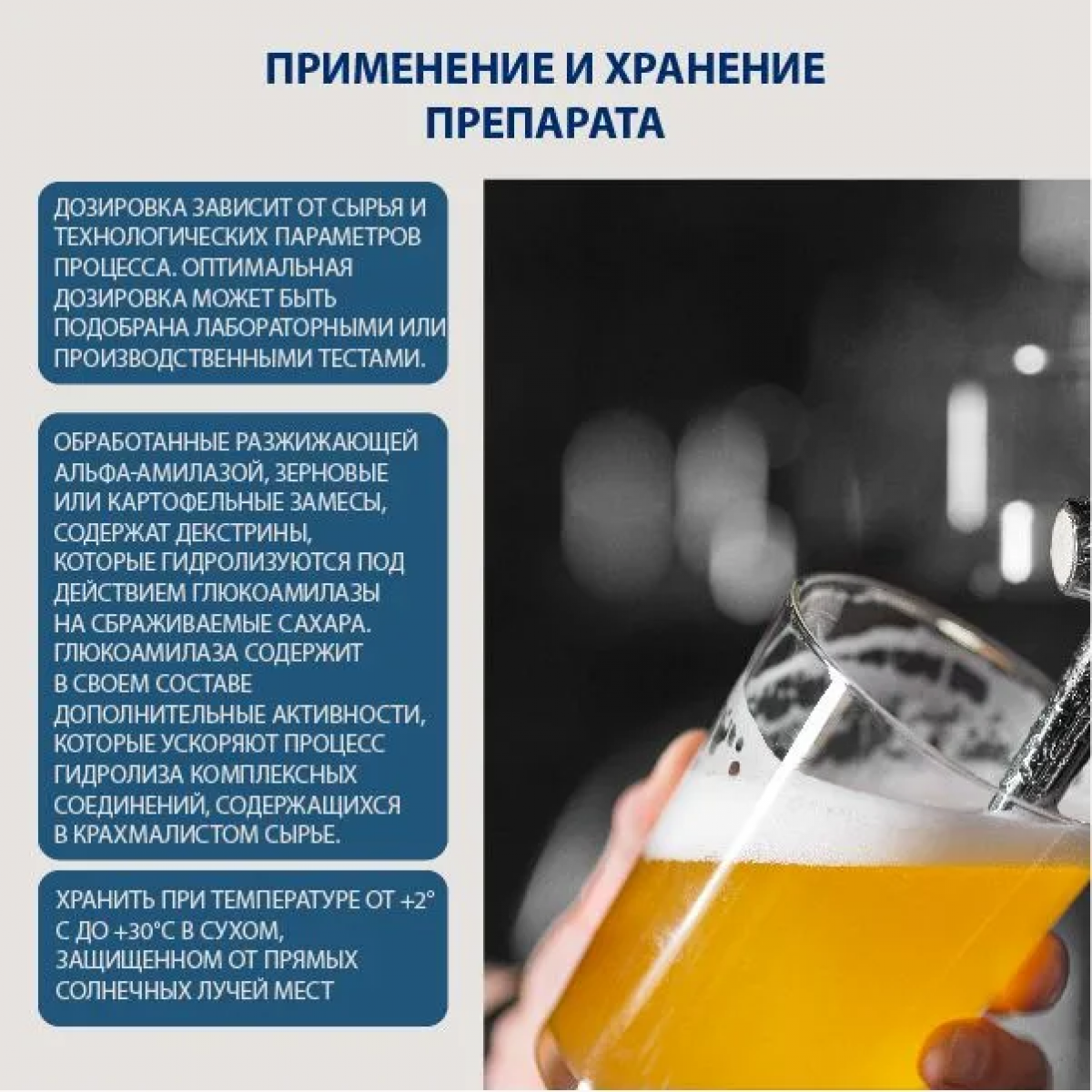Обработанные разжижающей a-амилазой, зерновые или картофельные замесы, содержат декстрины, которые гидролизуются под действием глюкоамилазы на сбраживаемые сахара. Глюкоамилаза содержит в своем составе дополнительные активности, которые ускоряют процесс гидролиза комплексных соединений, содержащихся в крахмалистом сырье.
