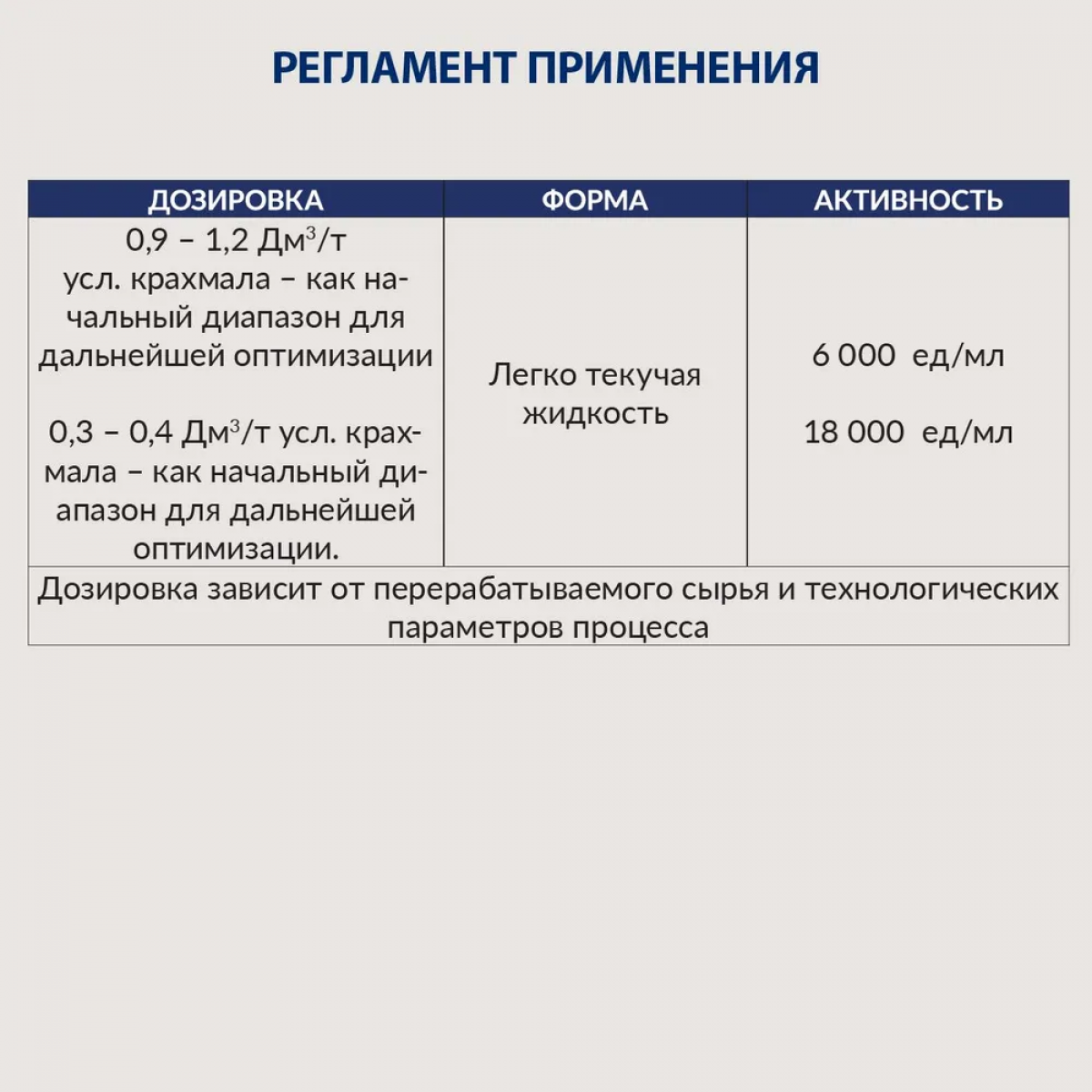Мы рекомендуем дозировку 0,9 – 1,2 Дм3/т крахмала, как начальный диапазон для дальнейшей оптимизации.