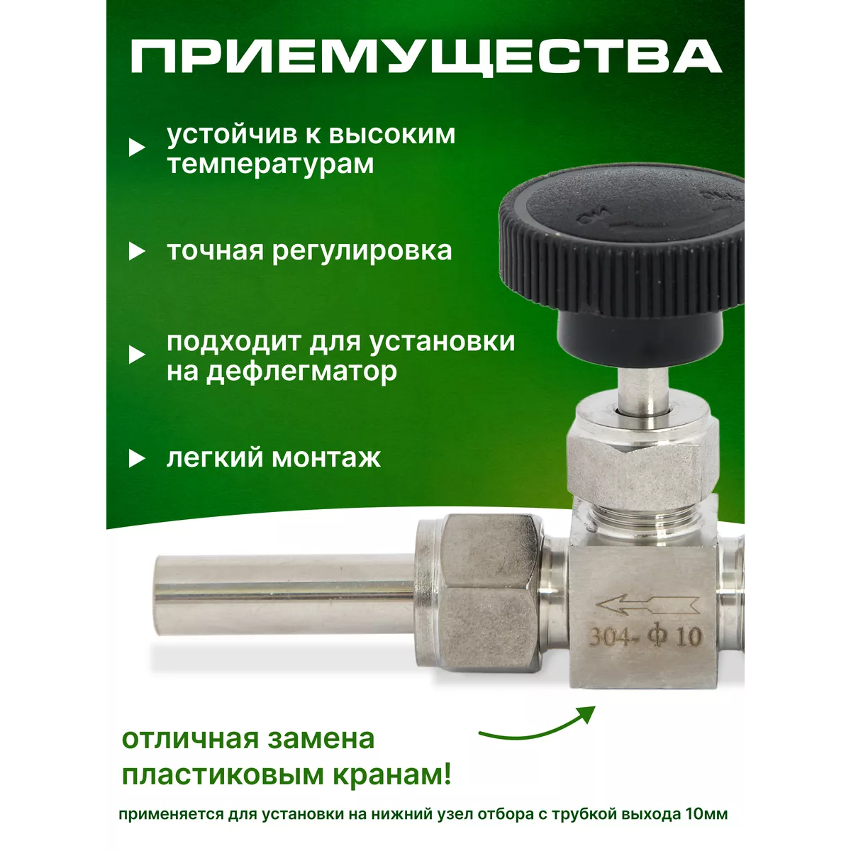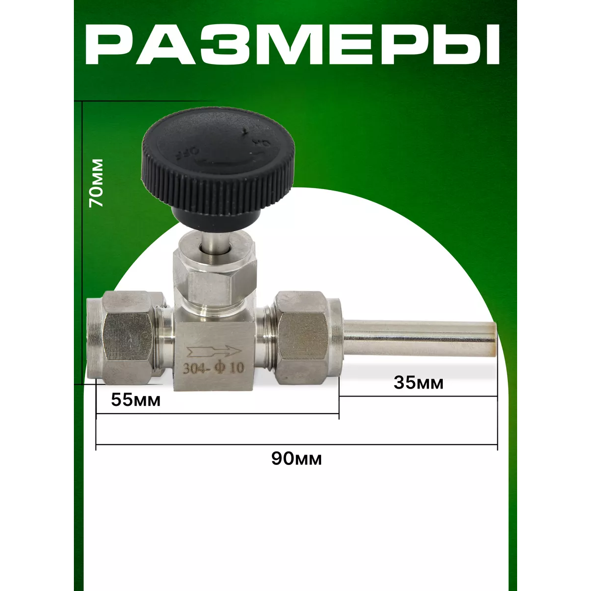Характеристики Кран игольчатый (сталь 304 нерж) 10 мм