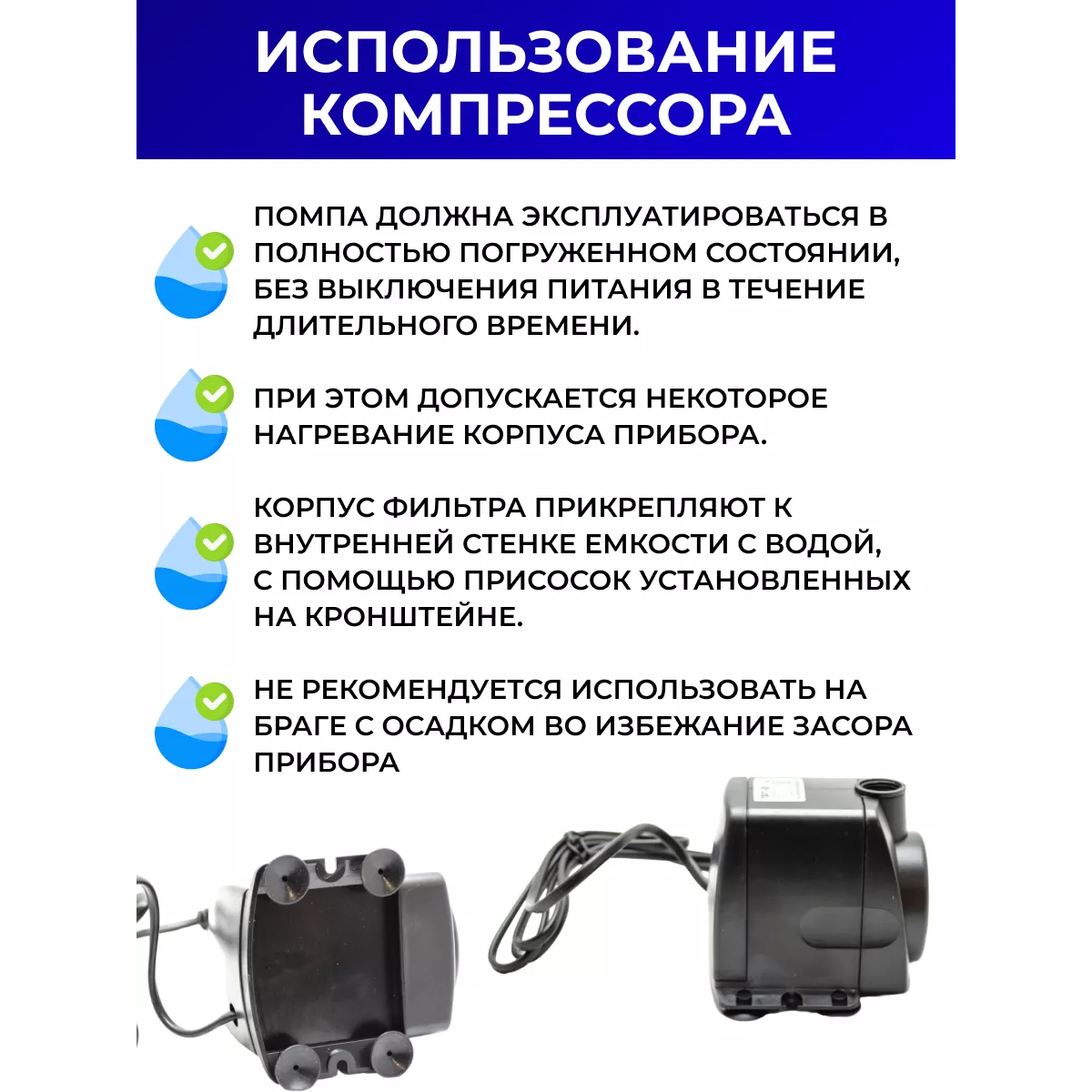 Погружной компрессор для охлаждения холодильника или дефлегматора самогонного аппарата. Работает по принципу замкнутого типа: 1. Опускаете компрессор в емкость с холодной водой. 2. Подключаете шланг от компрессора на вход в охладитель. 3. К выходу охладителя подключаете шланг и опускаете в ту же ёмкость. 4. Включить аппарат, охлаждение началось. Во время длительной работы, возможно потребуется долить холодной воды Диаметр штуцера на компрессоре: 14мм. Технические характеристики помпы SunSun: Тип насоса: погружной Напряжение: 220 Вольт; Производительность: 800 литров в час; Диаметр выходного штуцера на шланг: 14 мм; Кабель, длина: 1,5 метра;