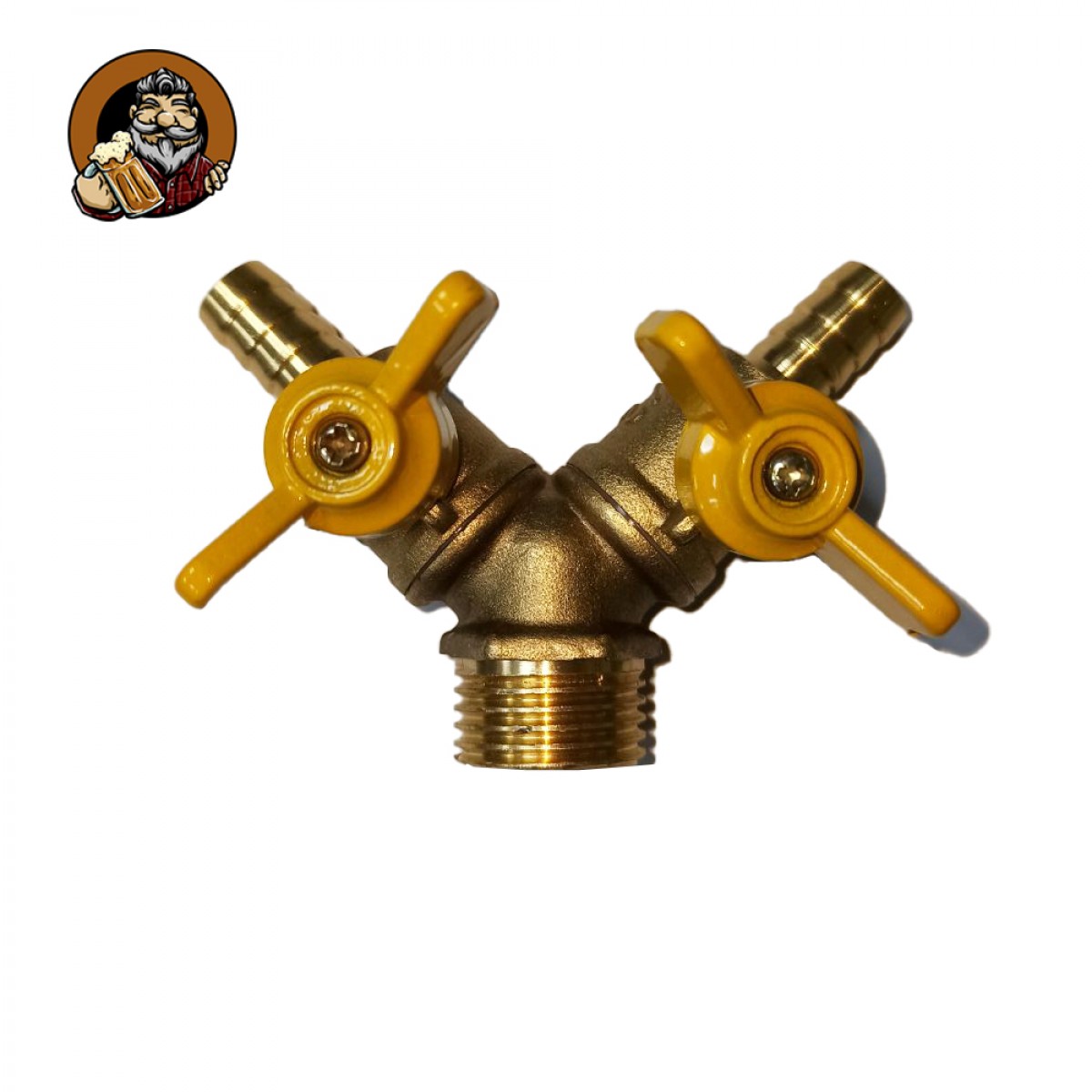 Кран-тройник на шланг 10 мм и 1/2 (папа)