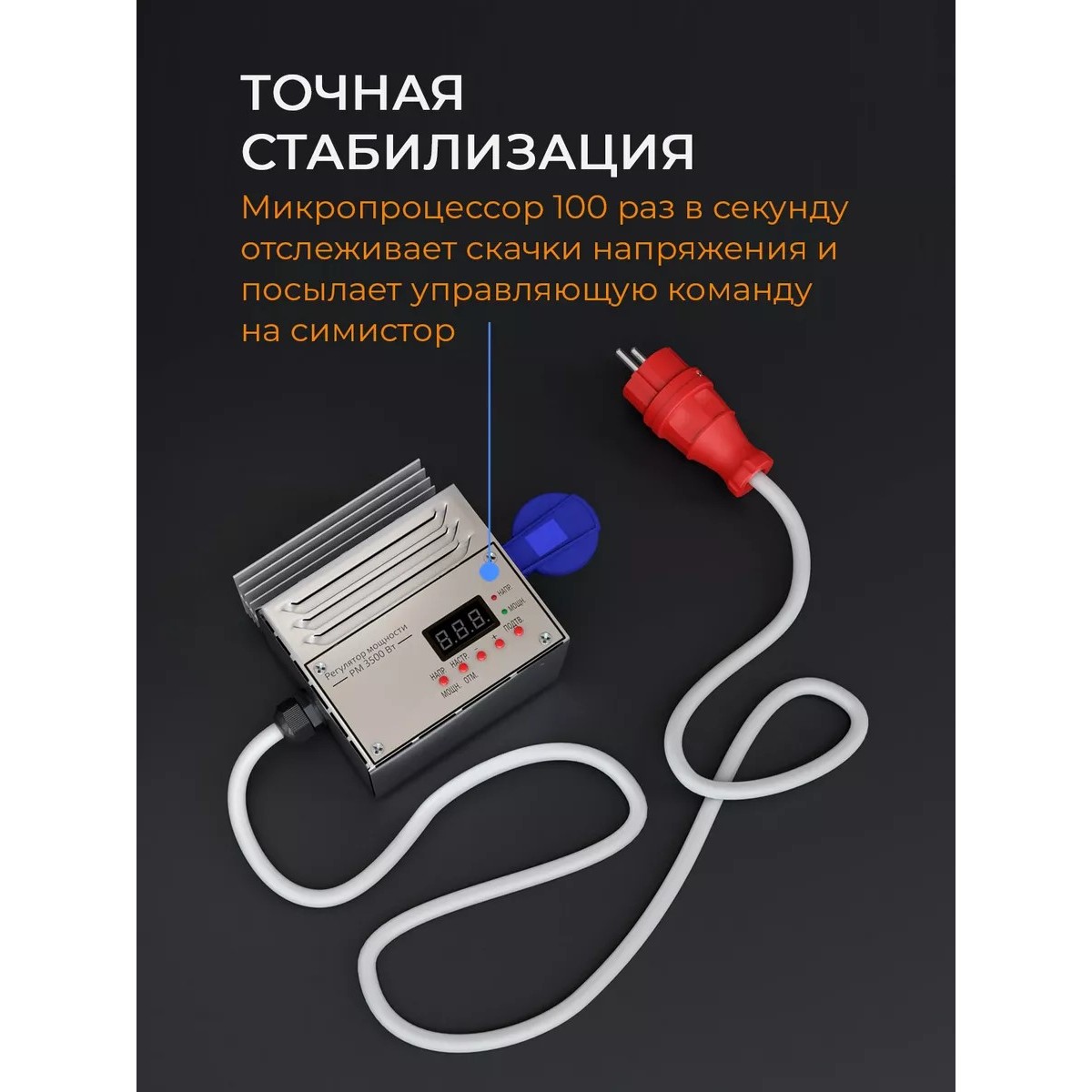 - Регулятор мощности с цифровой стабилизацией РМ-3500 позволяет регулировать напряжение и мощность любого элеĸтроприбора (в том числе ТЭНа для самогонного аппарата) мощностью до 3.5 кВт с точностью до 1 В.