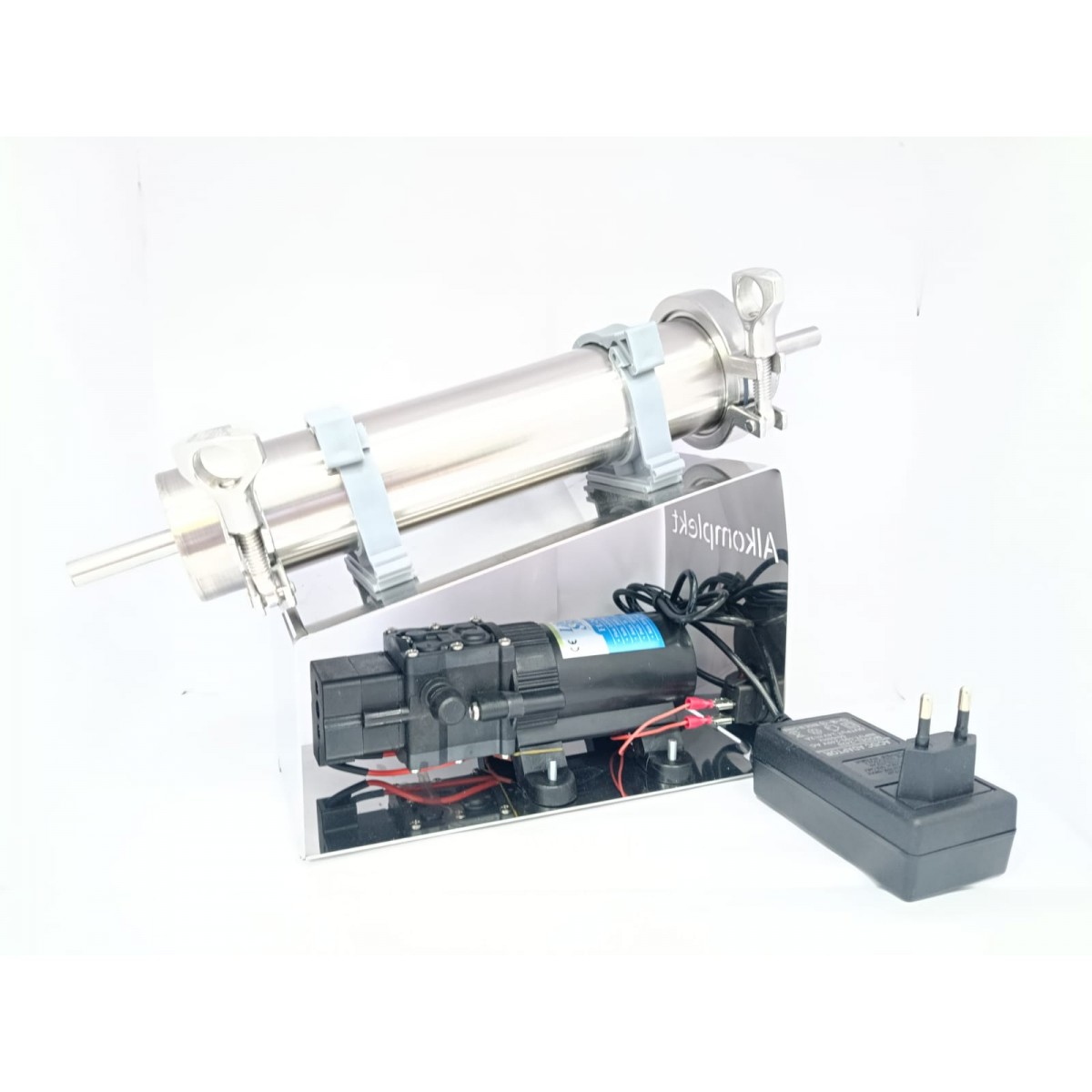 Комплект, предназначенный для углевания и очистки самогона с использованием кокосового или березового активированного угля. В комплекте есть все необходимое для работы, кроме самого угля. Состав набора: насос (производительность насоса до 2,8 л/мин, питание от сети 220В); картридж для угля (металическая царга, с креплениями для фиксации). Достаточно засыпать уголь в колбу и начать углевание.